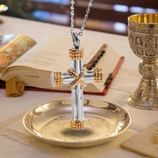 Colar de Cruz Cravejada em Prata 925 e Ouro 14K
