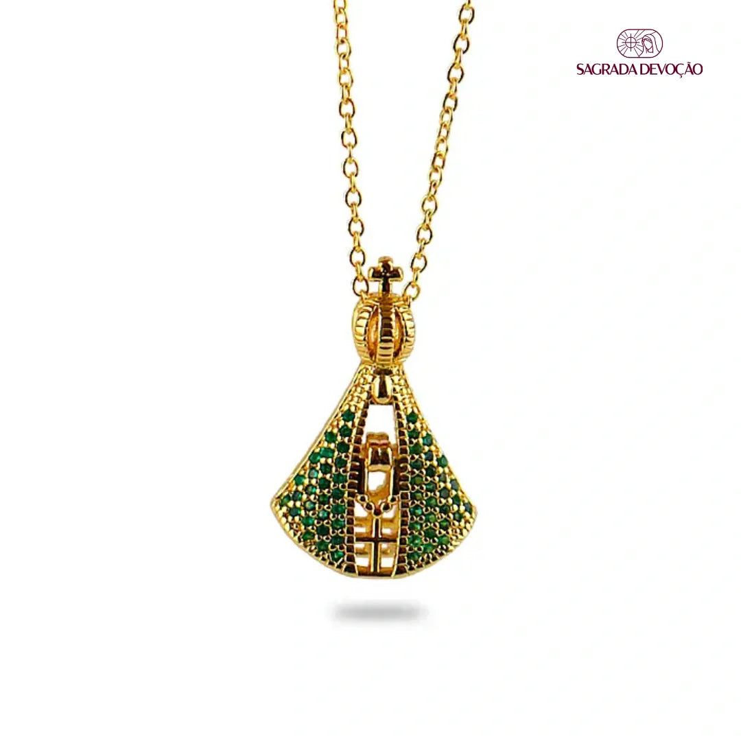 Colar Nossa Senhora Aparecida - Dupla Face com Manto de Zircônia Verde